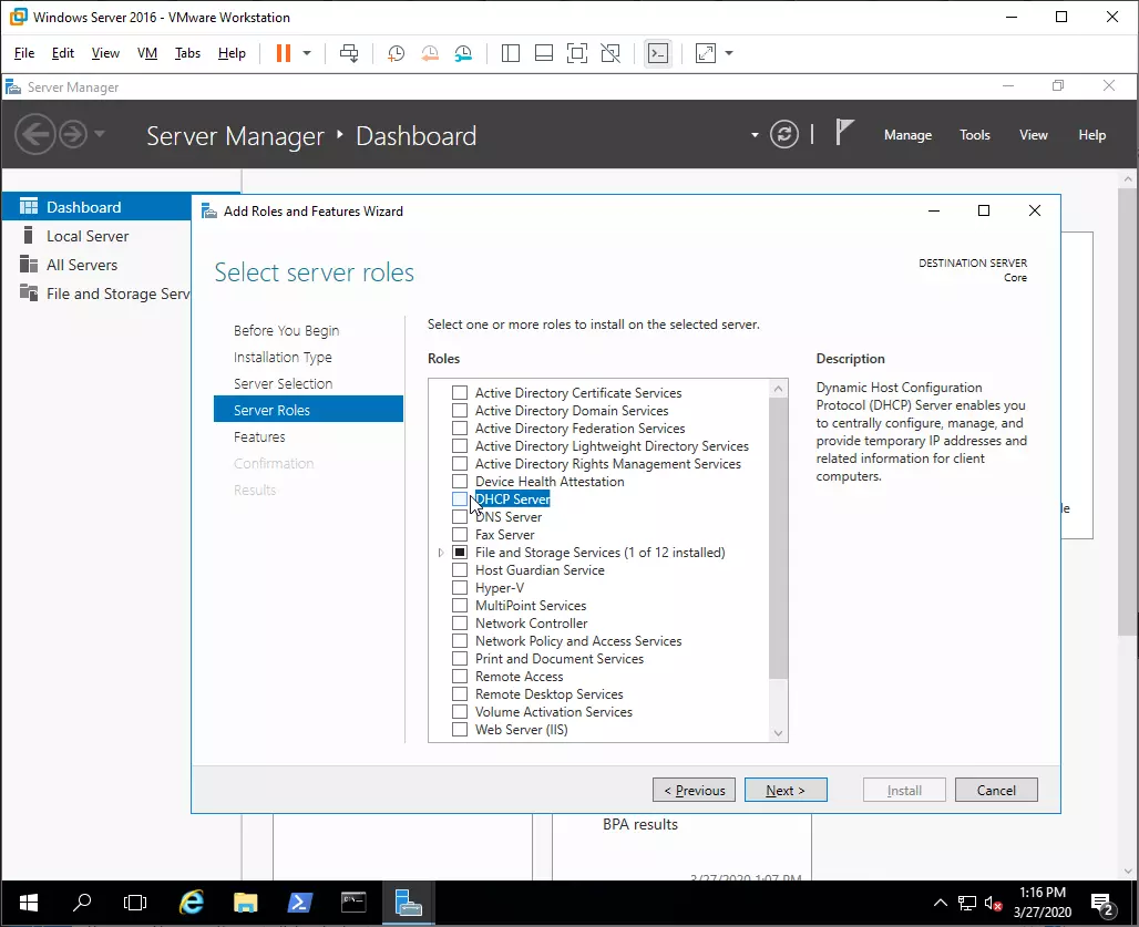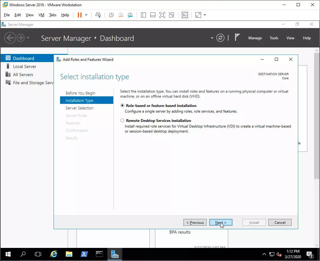 Указваме, че ролята ще се инсталирана на Core. Това е сървъра върху който работим.
